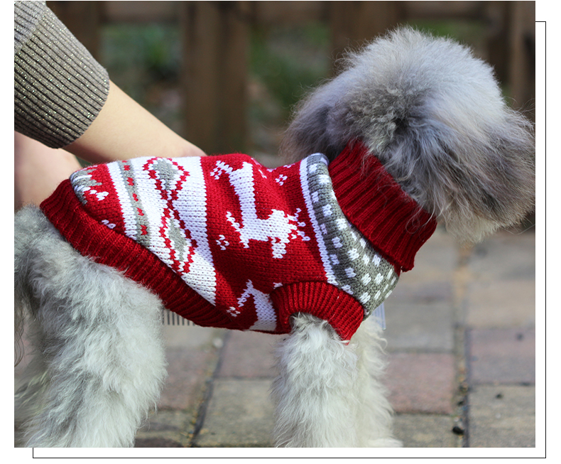 愛らしいトナカイ柄が映えるあたたかな犬服です。