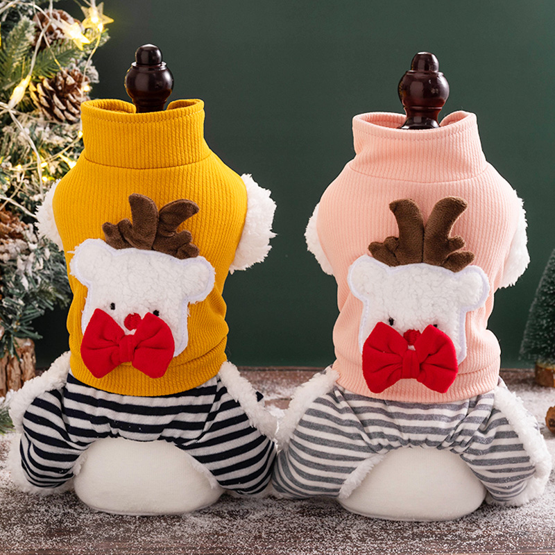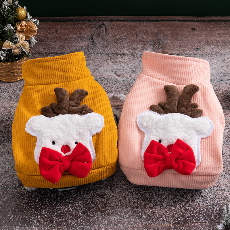 愛らしいトナカイの立体装飾が背中に施された冬の定番犬服です。