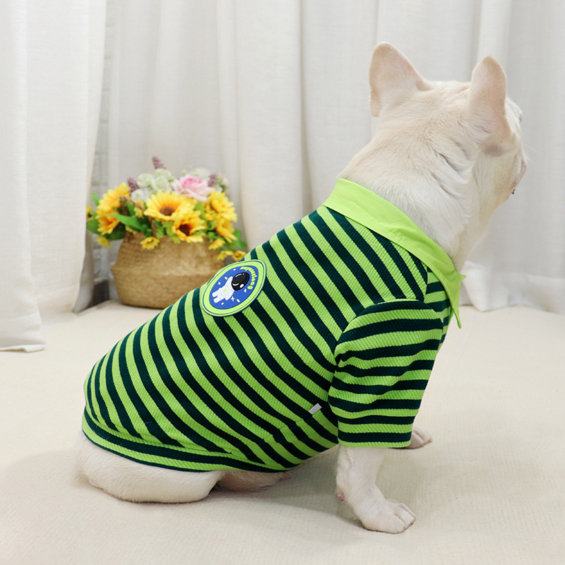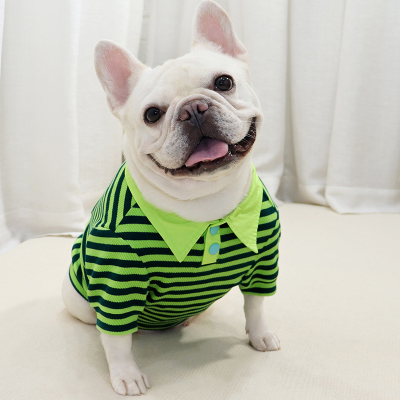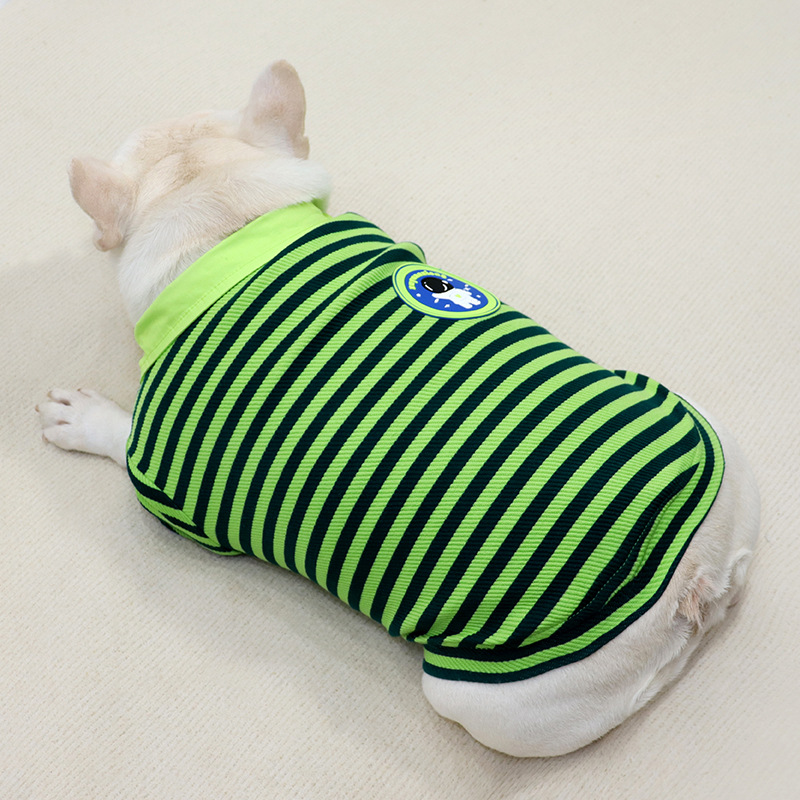 爽やかなボーダー柄が目を引くおしゃれな犬服のポロシャツです。