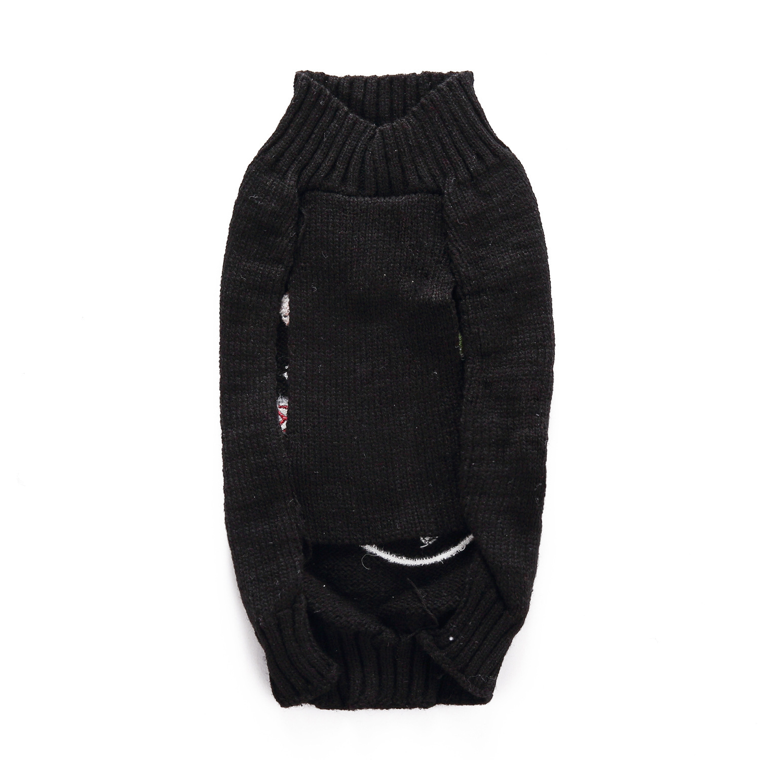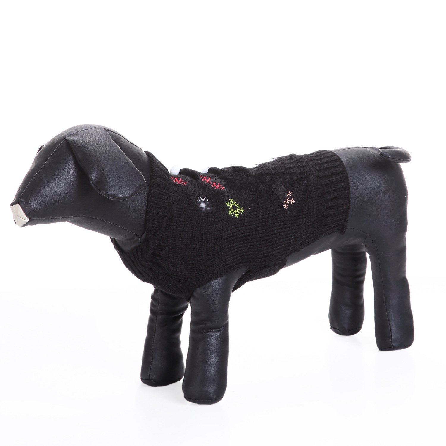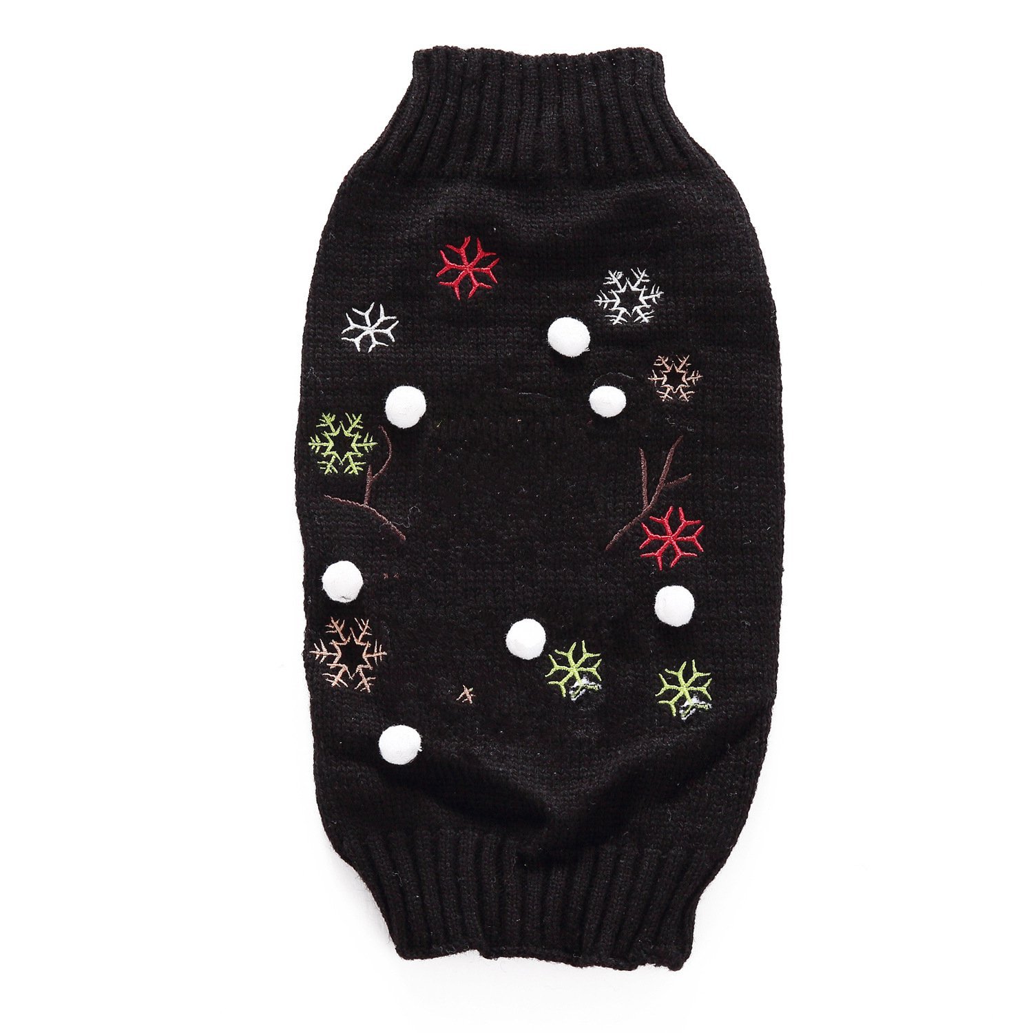 冬の季節にぴったりな、愛らしい雪の結晶と雪玉の刺繍が施された犬服のニットです。