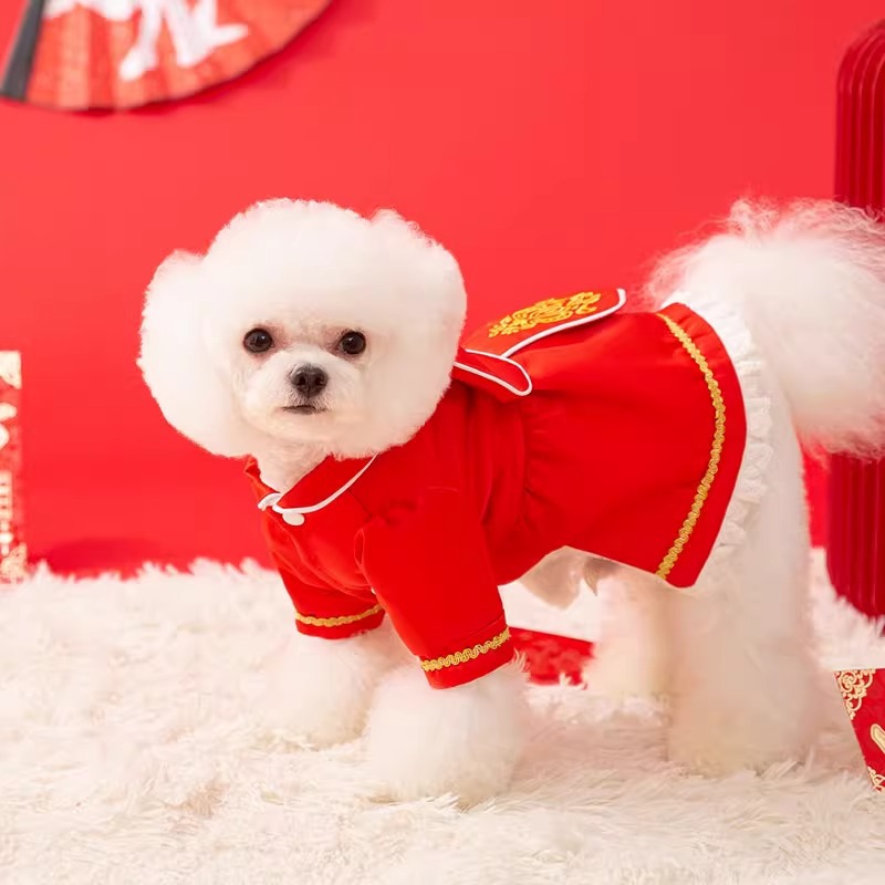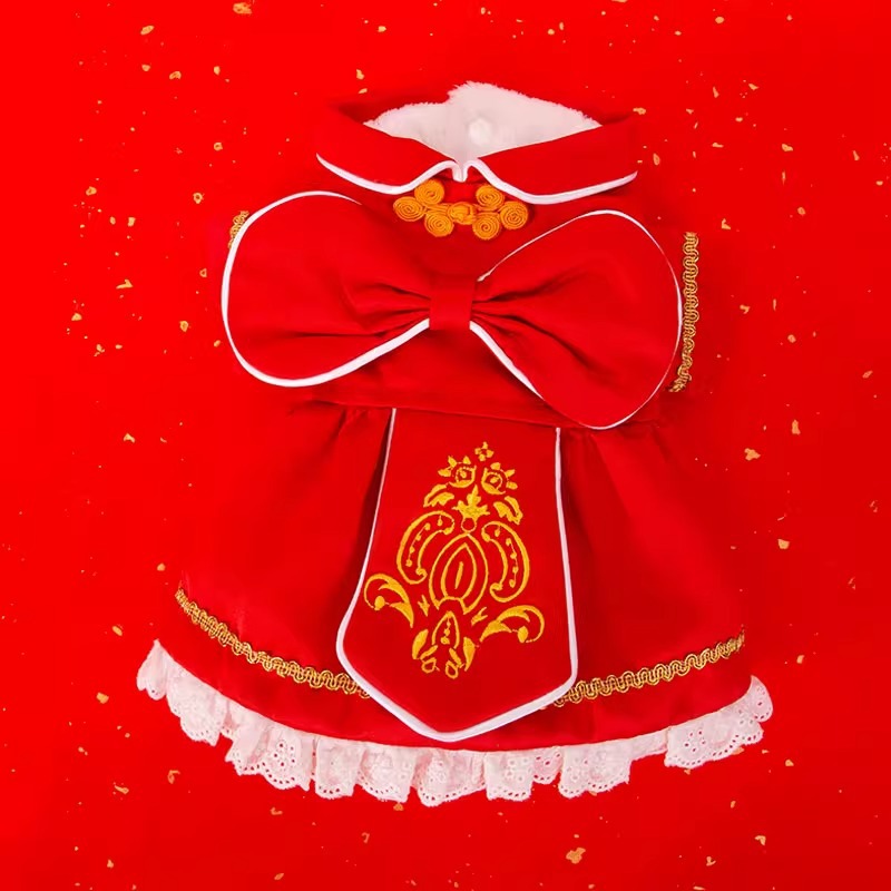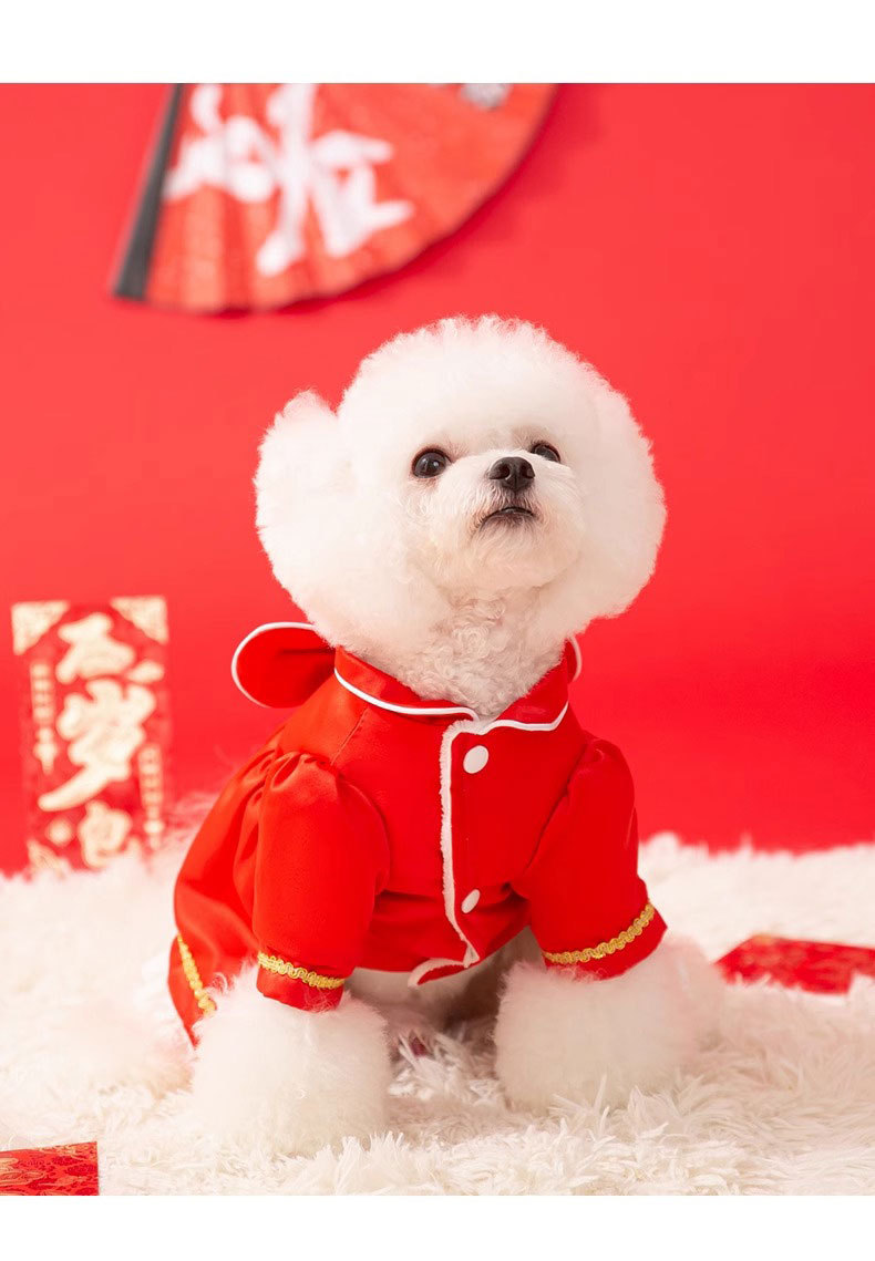 特別な日のお出かけにぴったりな華やかな犬服のアウターです。
