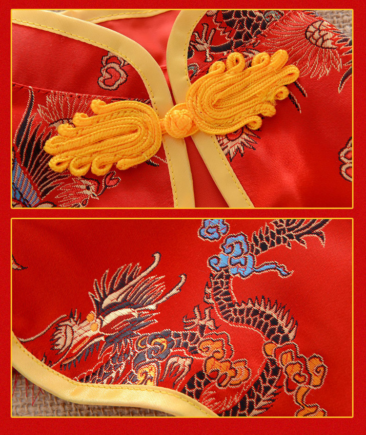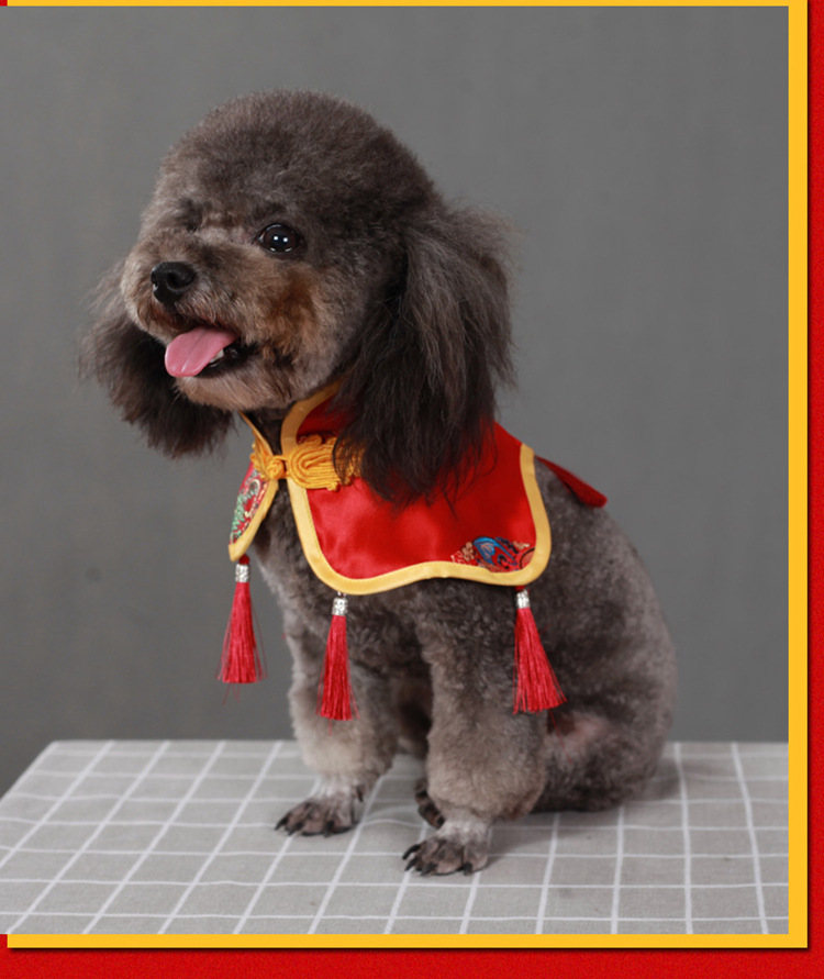 伝統的な中華様式のデザインが目を引く犬服のワンピースです。