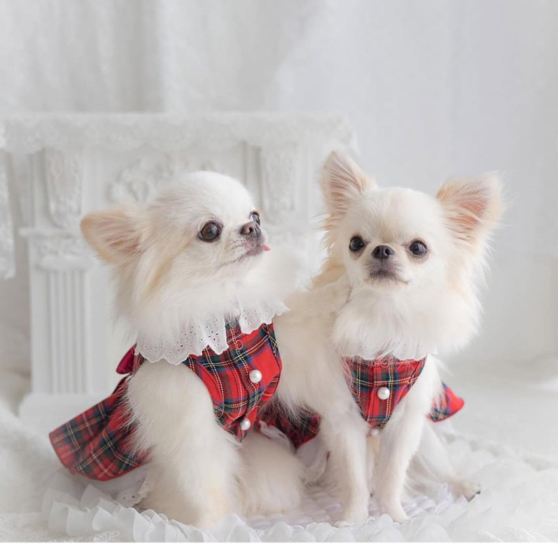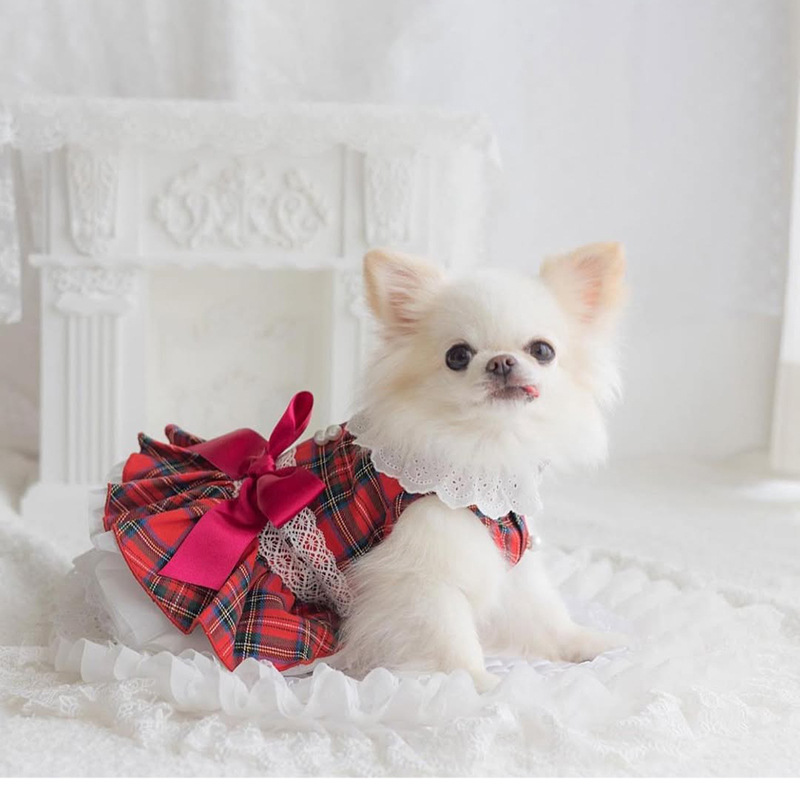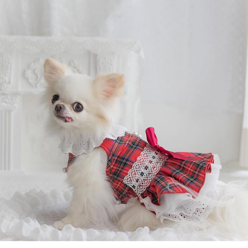 愛犬を華やかに彩る、タータンチェック柄が印象的なワンピースです。