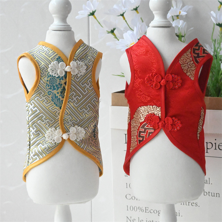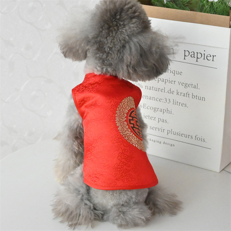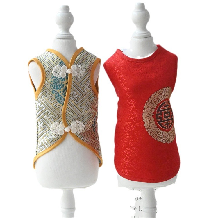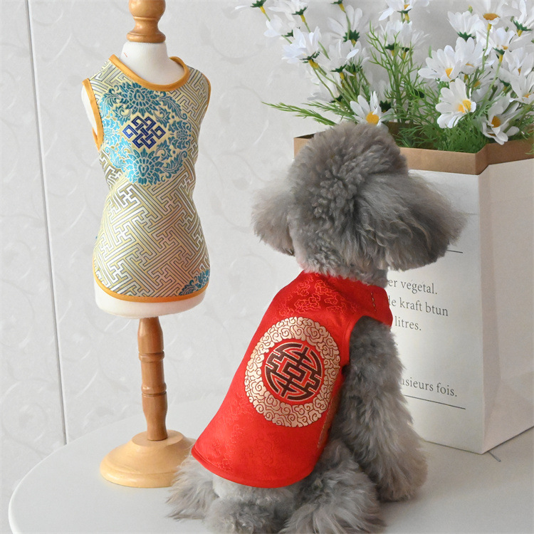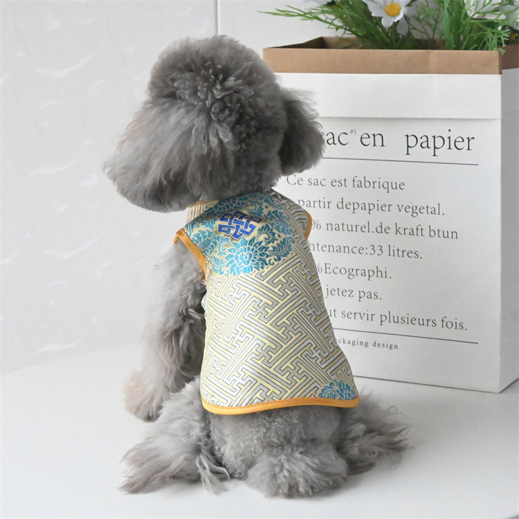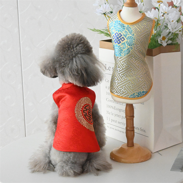 背中に美しい伝統的な吉祥文様の刺繍をあしらった犬服のワンピースです。