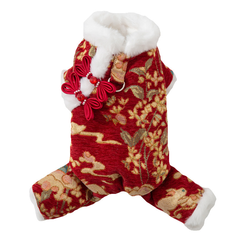 伝統的な和柄刺繍が美しい高級感あふれる犬服のつなぎです。