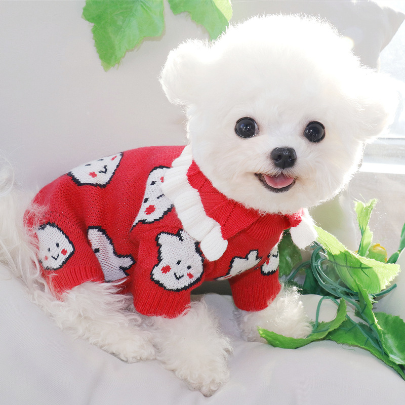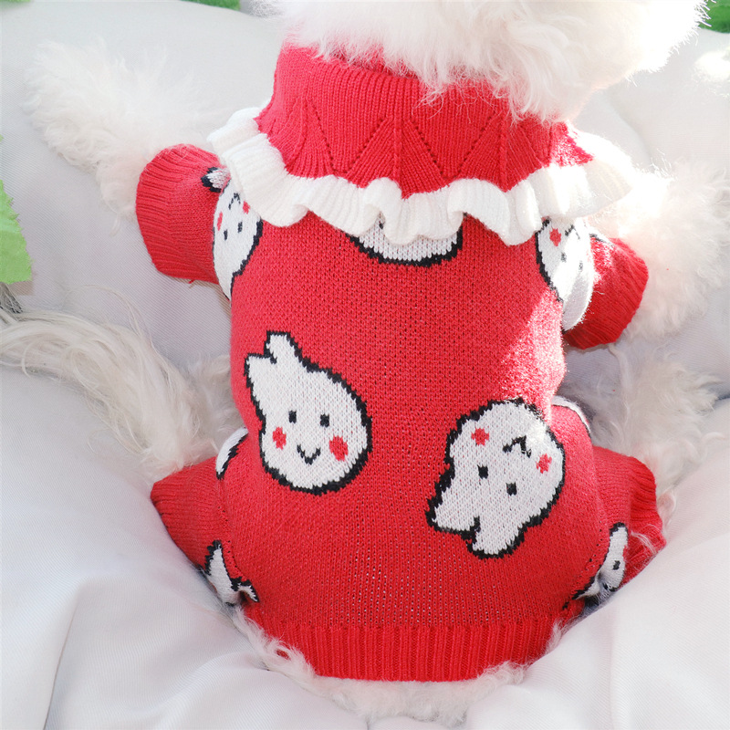 可愛いおばけ模様が全体に散りばめられた、冬の季節にぴったりの犬服です。