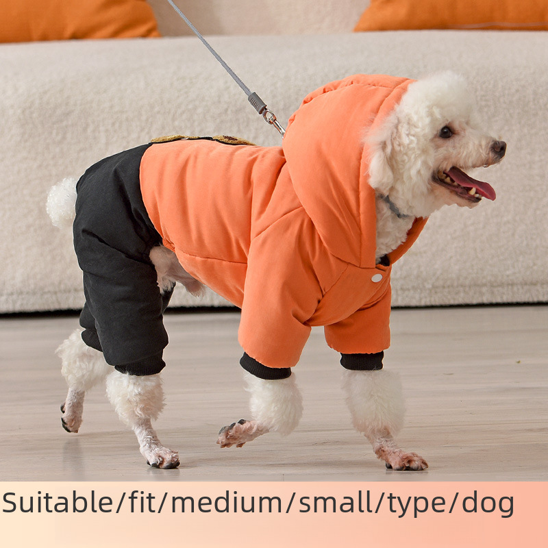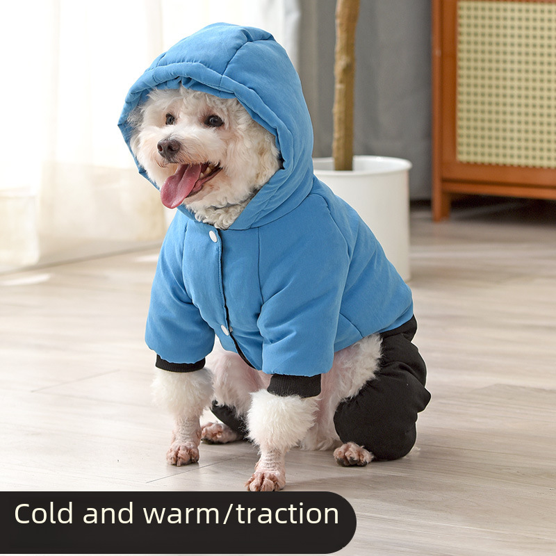 寒い季節も快適に過ごせる中綿入りの犬服パーカーです。