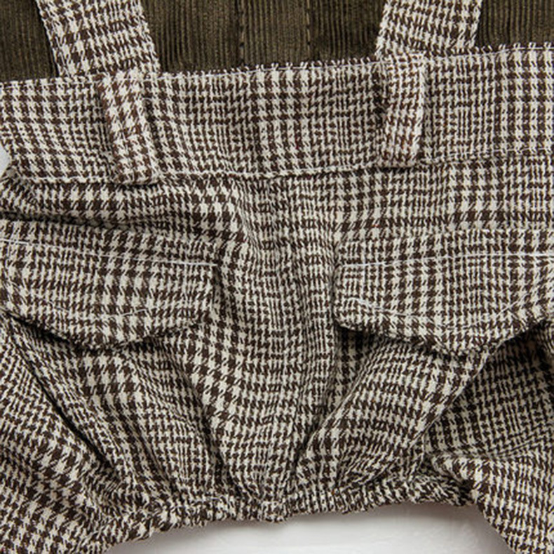 ボタンや格子柄のパンツ部分など細部までこだわった仕上がりで、お出かけや記念撮影にぴったりです。