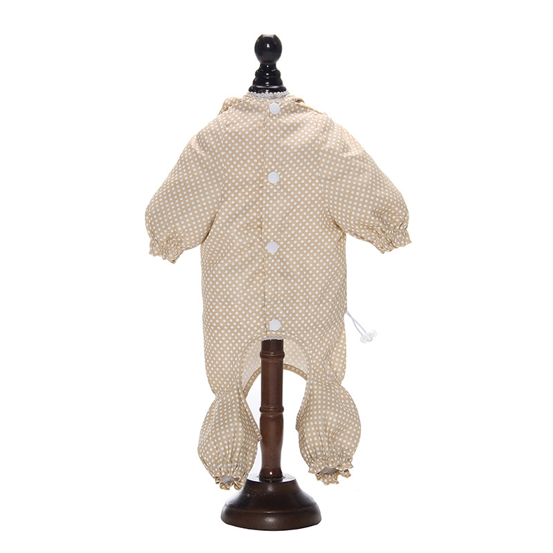 水玉模様が愛らしく、フードと裾にあしらわれたフリルがエレガントな雰囲気を演出します。