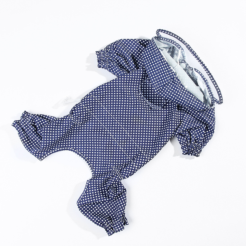 四足を覆うデザインで足元までしっかり雨から守り、撥水加工された生地で雨天時も快適に過ごせます。