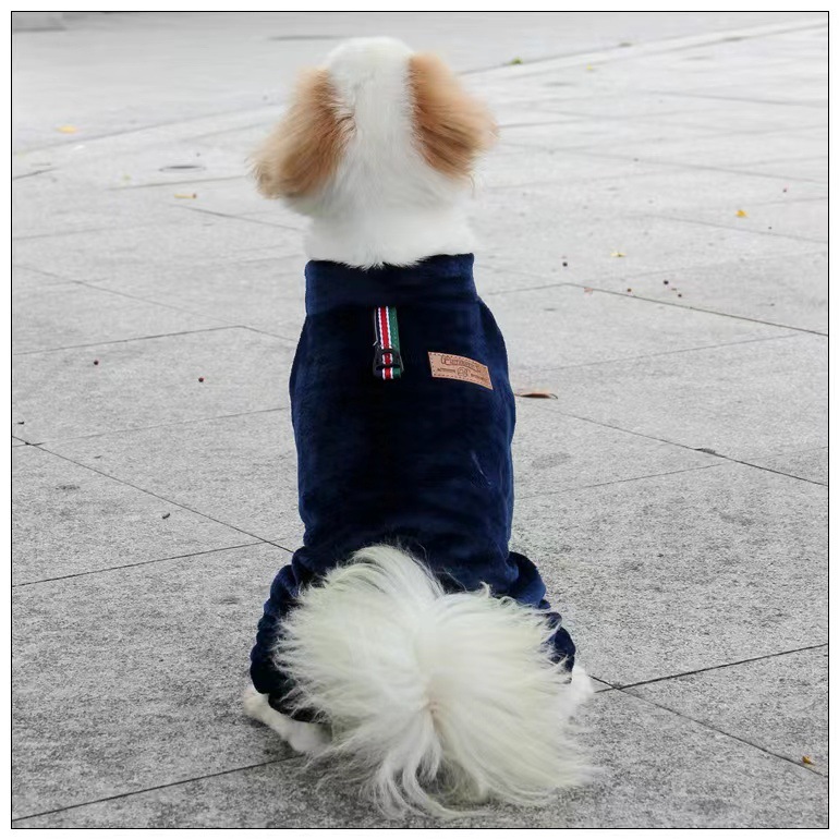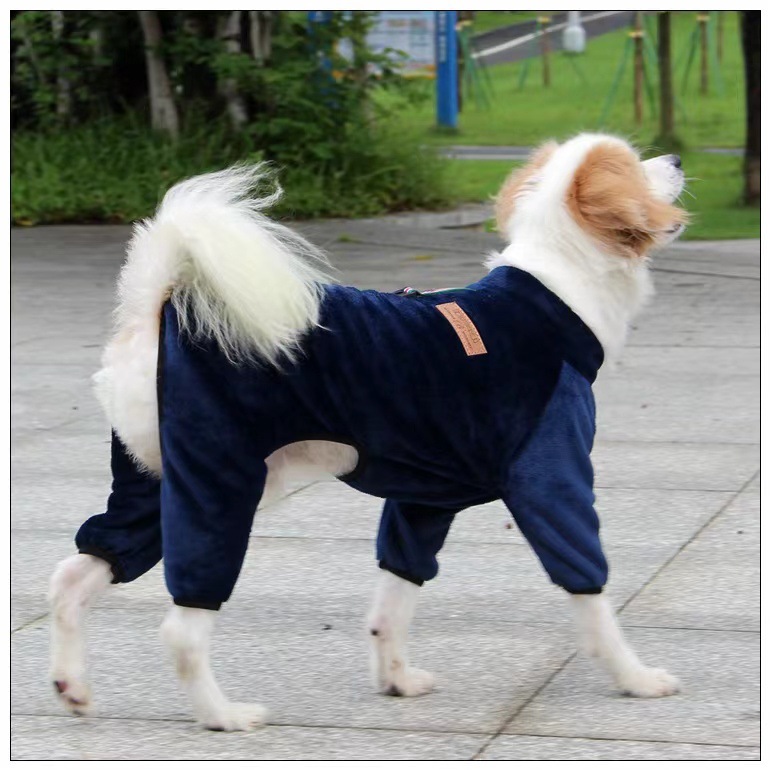 四つ足をすっぽり覆うつなぎタイプで、寒い季節のお散歩や室内でのリラックスタイムに最適です。